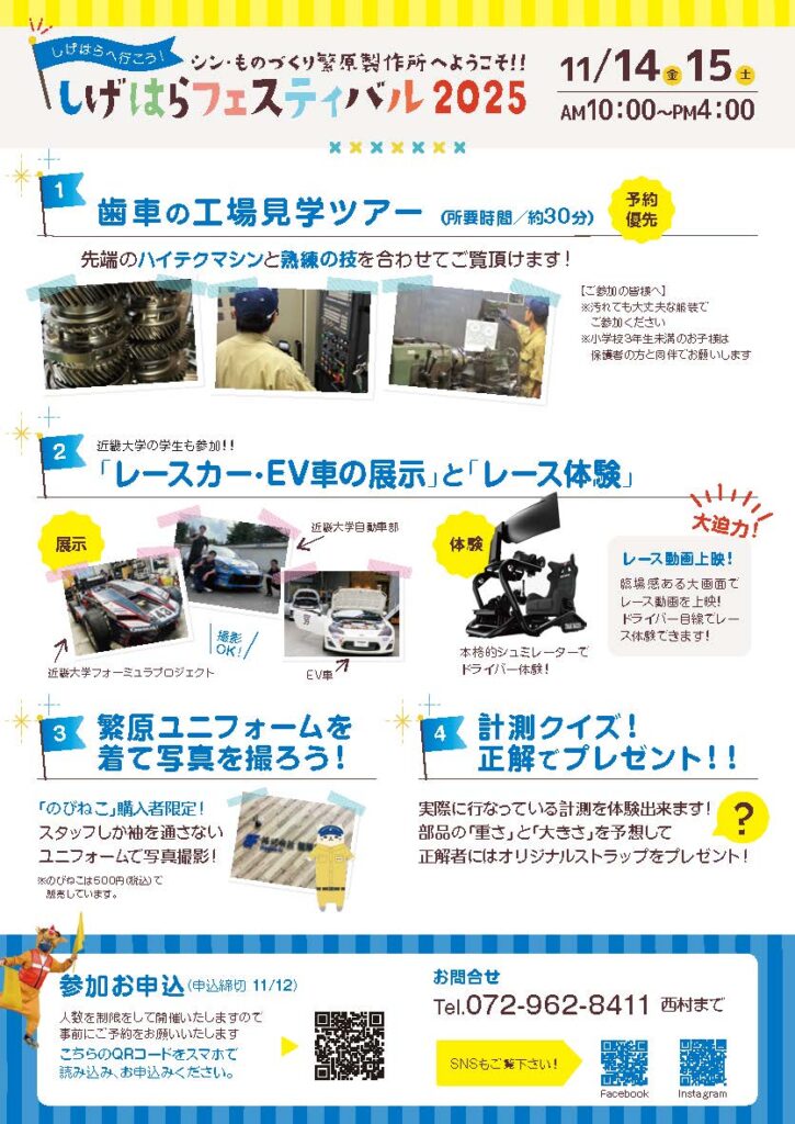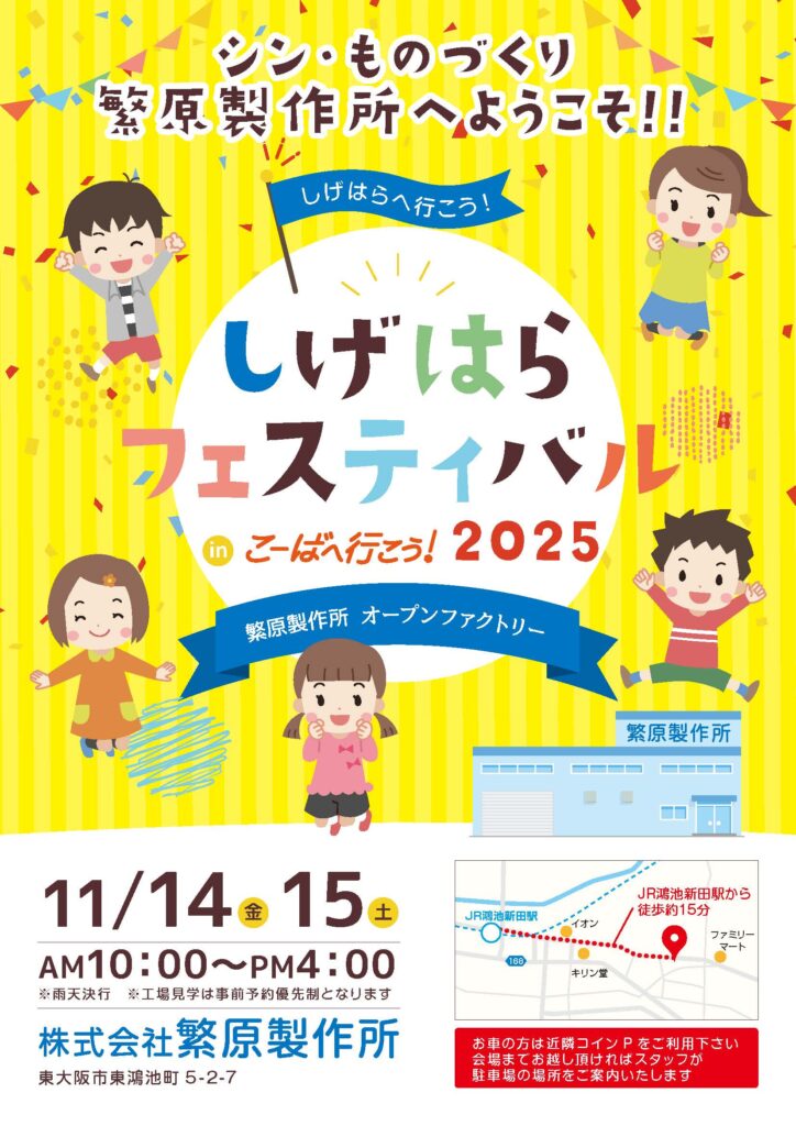 しげはらフェスティバル in こーばへ行こう!2025を11月14日(金)、15日(土)で開催いたします。